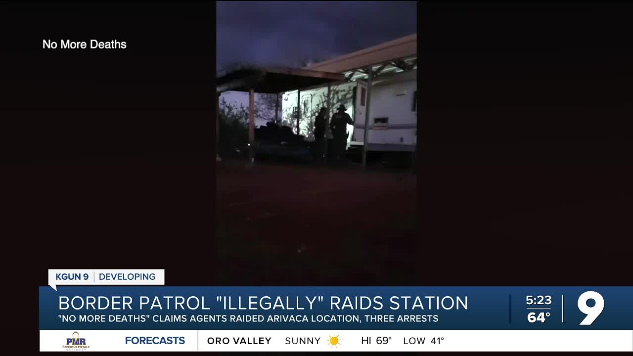 Video footage they provided KGUN9 News appears to show what the group said are Border Patrol agents attempting to enter a trailer on the property before eventually gaining access.