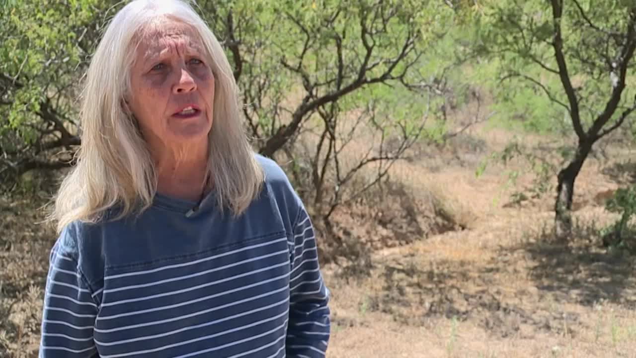 DRAGOON, Ariz. (KGUN) — On Dragoon Road, burn marks and pink slurry from planes show where crews stopped the forward progress of the Triangle 2 fire. One of the first people to battle the Triangle Two Fire in Dragoon was the owner of the historic Triangle T Ranch, Linda Kelly.