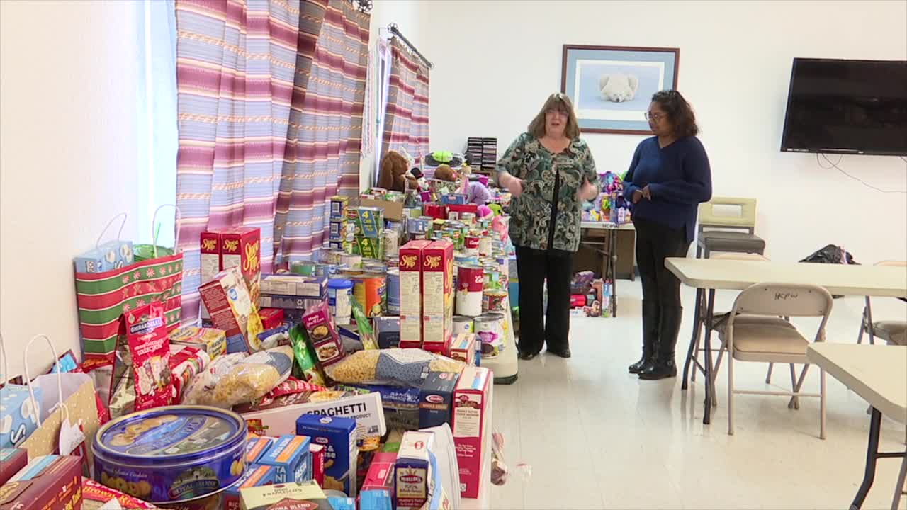While the town has received substantial donations of canned goods, Harvey says they still need turkey and stuffing to complete the Christmas meal boxes.