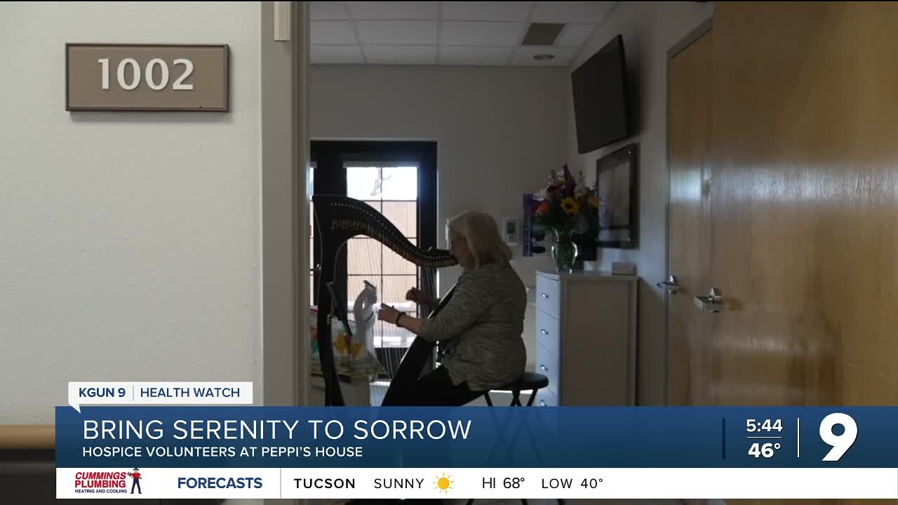 TUCSON, Ariz. (KGUN) — Once a week, Jan Afonso packs her 40-plus inch carbon fiber harp in the trunk of her car and drives over to Peppi's House—a Tucson Medical Center Hospice Facility on Tucson's Eastside.