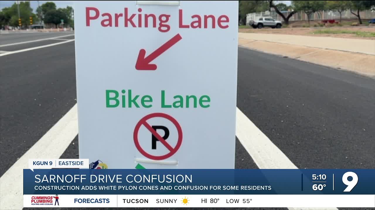 TUCSON, Ariz. (KGUN) — New changes along a stretch of Sarnoff Drive between Broadway and Kenyon Drive have left some Eastside residents and business owners frustrated and confused about what exactly is happening to the roadway.