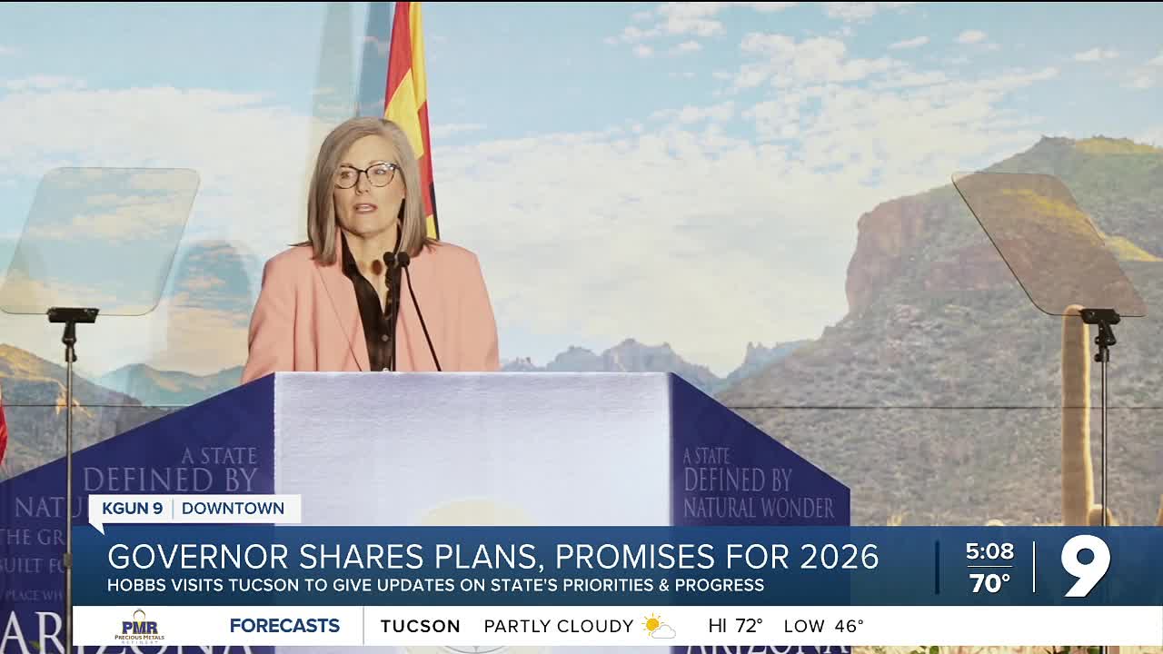 Arizona Governor Katie Hobbs traveled to Tucson to share her administration's progress and outline priorities for the year ahead, focusing on economic stability, water conservation, and housing affordability.