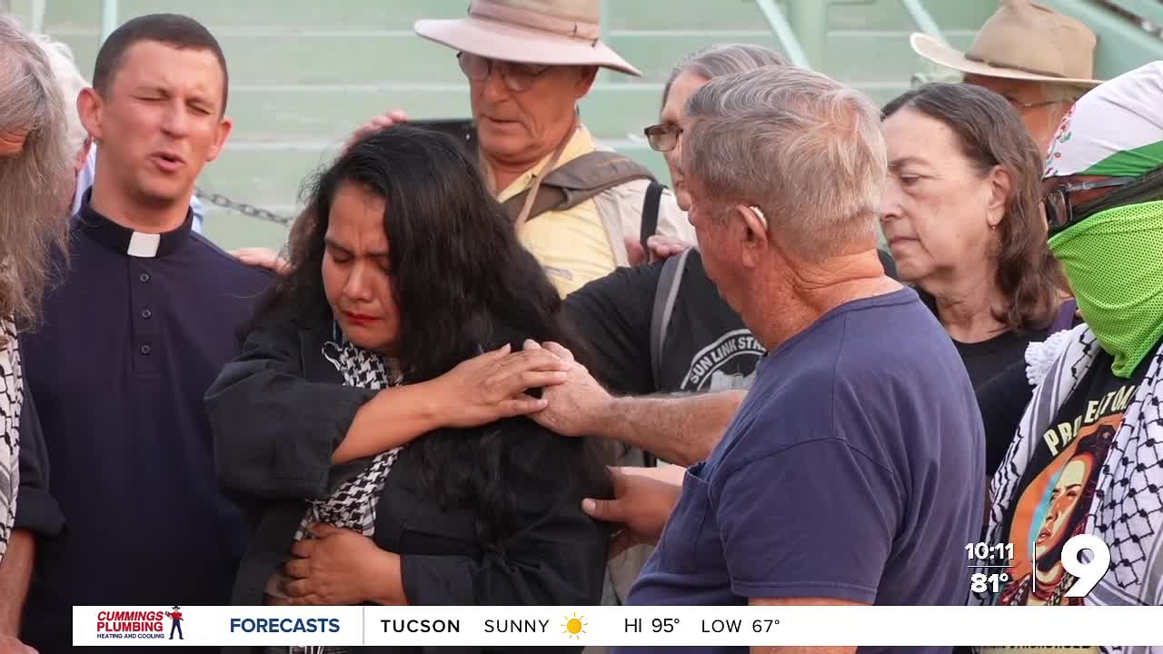 Casa Maria Catholic Workers and the community gathered at in front of St. Augustine Cathedral in downtown Tuesday night to kick off a 40-day water only fast in hopes of bringing awareness to the war in Gaza and getting Arizona Senators Mark Kelly and Ruben Gallego's attention.