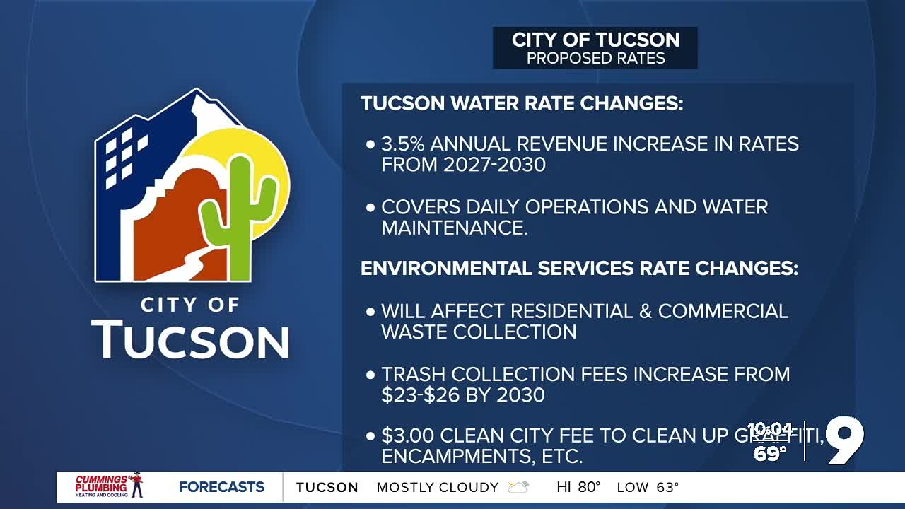 TUCSON, Ariz. (KGUN) — The city of Tucson is holding meetings with the community regarding proposed rate increases for Tucson Water, Environmental Services, Transportation & Mobility Services, and Planning and Development.
