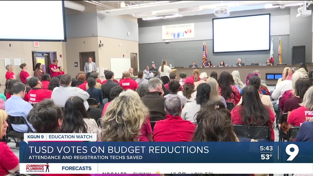 TUCSON, Ariz. (KGUN) — The Tucson Unified School District Governing Board approved most of its administrative budget reduction recommendations for the 2026-27 fiscal year (FY) Tuesday night, sparing attendance and registration technicians after a packed room of teachers, staff and parents urged the board to reconsider.