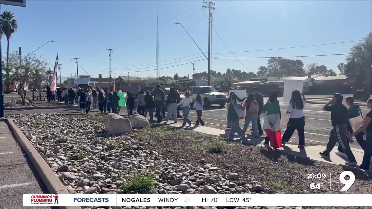 TUCSON, Ariz. (KGUN) — Students from Flowing Wells and Amphitheater high schools joined together in a walkout protest on Tucson's northside, demonstrating against Immigration and Customs Enforcement actions toward the immigrant community.