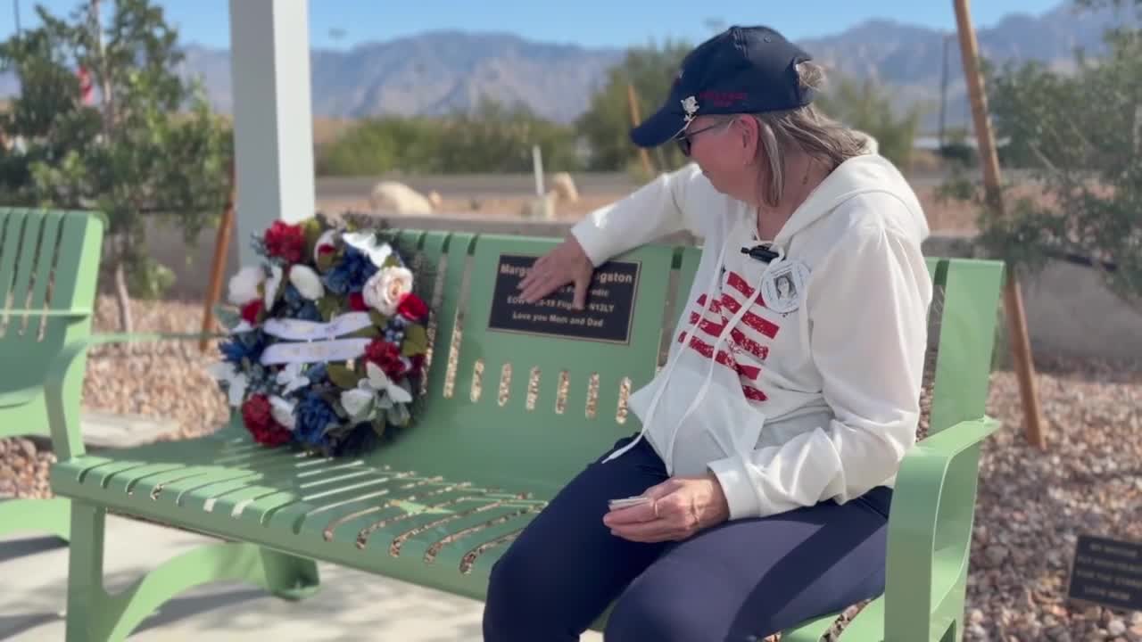 This bench at the Arizona Heroes Memorial is meant to honor Veteran Margaret Langston, First Responder Flight Paramedic, who lost her life in a helicopter crash while saving lives back in 2019.