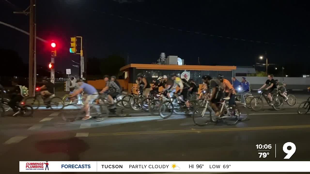 TUCSON, Ariz. (KGUN) — On Tuesday night there were about 100 people riding bikes from 22nd and 4th in Tucson all the way to the University of Arizona where they rode out again. The group Tuesday Night Ride always gets together every Tuesday at the U of A, but this week it had an even bigger significance.