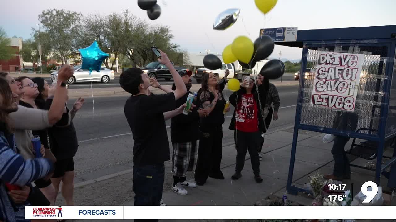 Becca's family held a balloon release ceremony at the site Thursday evening, where a memorial shrine has been built with some of her favorite things — Arizona drinks, orange sodas, snacks, her hat, along with flowers and candles.