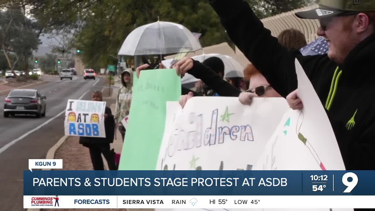 Families gathered outside the Arizona State School for the Deaf and Blind on the westside to protest the school's planned relocation to Copper Creek Elementary in Oro Valley, saying the move would damage their tight-knit community.