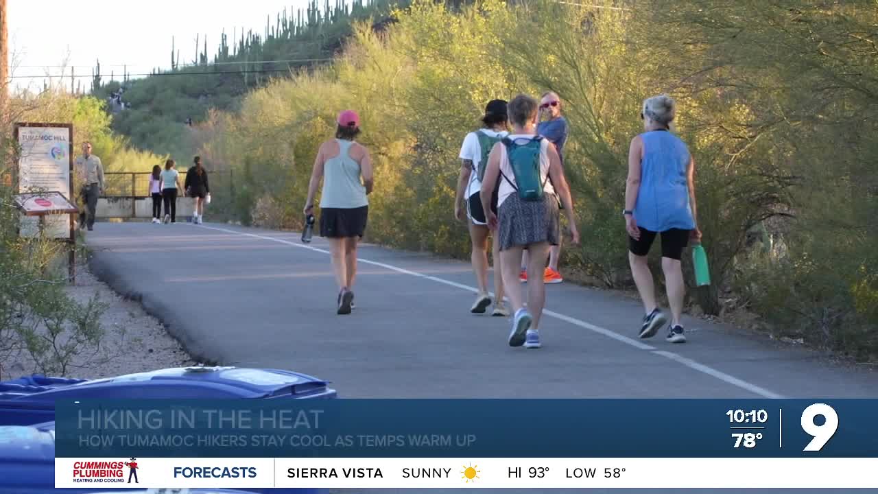 TUCSON, Ariz. (KGUN) — Tucson will likely see its first 100-degree day of the year by Thursday afternoon, prompting hikers on Tumamoc Hill to adjust their routines and find ways to cool down.