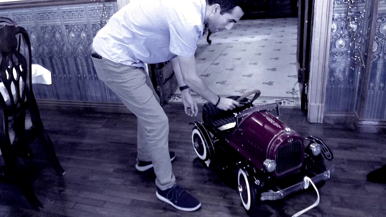 Staff leave toys for Billy, including a vintage-looking red car that Billy is cordial enough to share with Jenna's baby, who seems to quite enjoy the miniature as well.