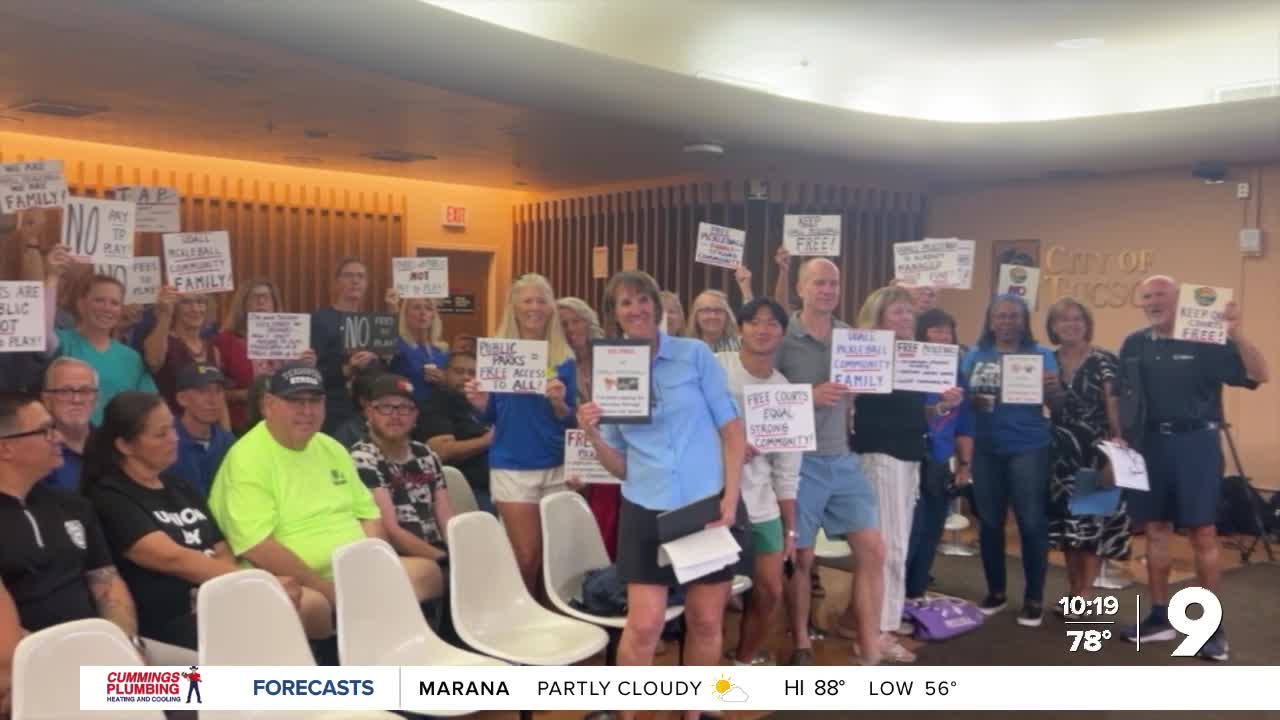 TUCSON — Dozens of pickleball players lined up outside Tucson City Hall on Tuesday to protest a proposed fee that could end free play at Udall Park.
