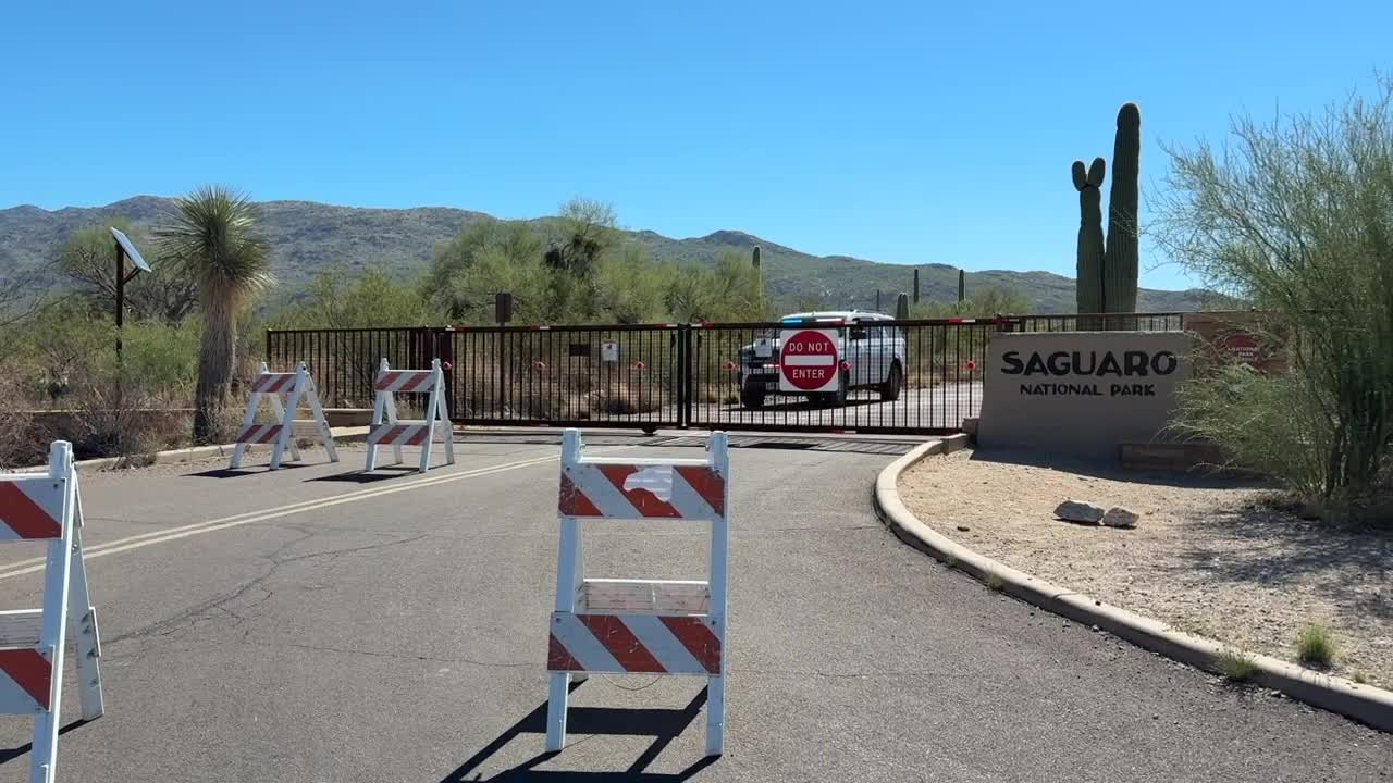 A Park Ranger has been guarding a locked gate at Saguaro National Park East. He’s telling visitors they can’t drive in but they can come through other entrances on foot or on bikes.