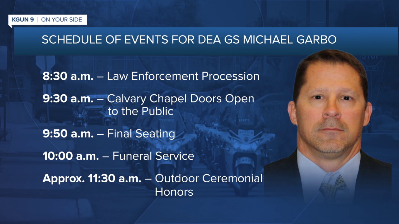 Dozens of family, friends and colleagues filled Calvary Chapel in Tucson on Friday to honor Michael Garbo, a longtime Drug Enforcement Administration group supervisor. He was part of a regional task force of DEA agents and local police inspecting baggage Monday at the train station downtown when the shooting erupted.