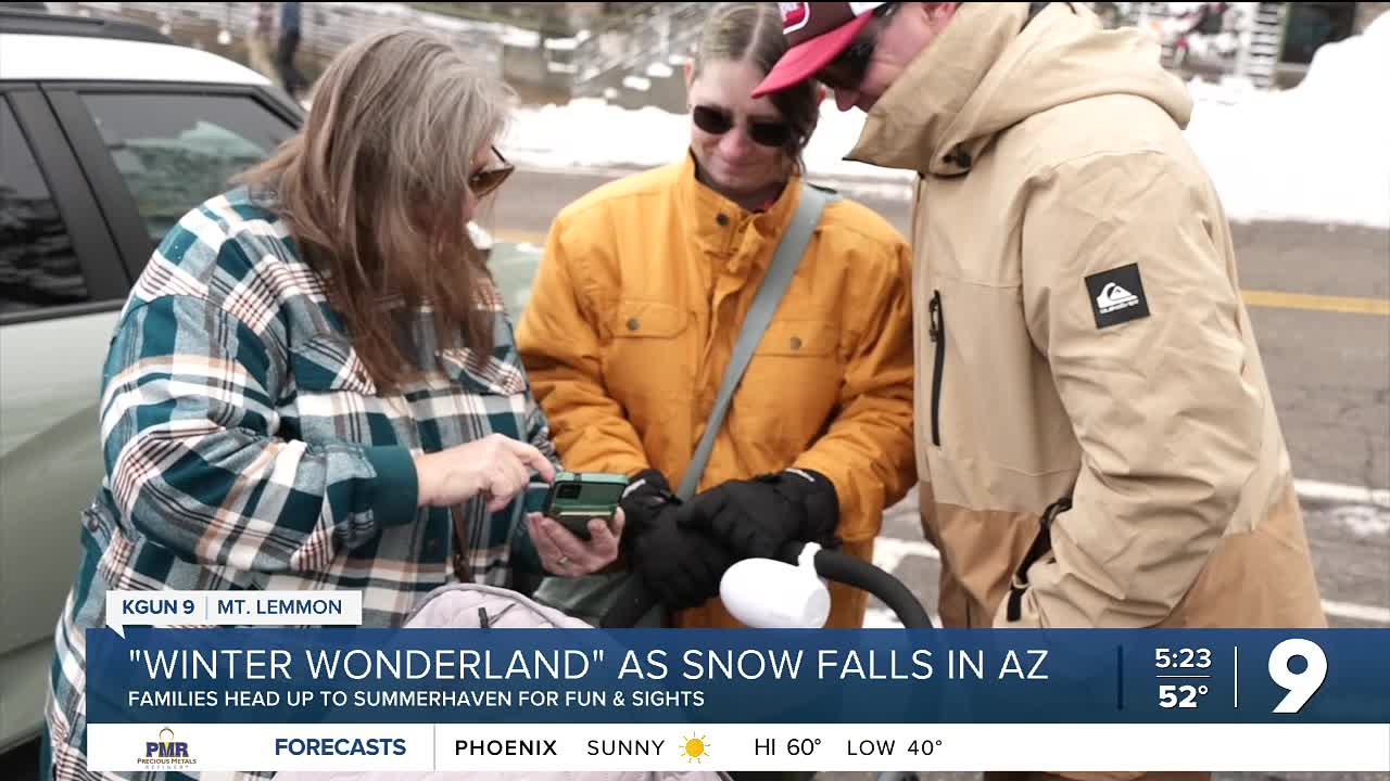 While Southern Arizona is known for its desert landscape, Mount Lemmon in the Catalina Mountains received over 8 inches of snow, creating a winter wonderland that drew families from across the region.