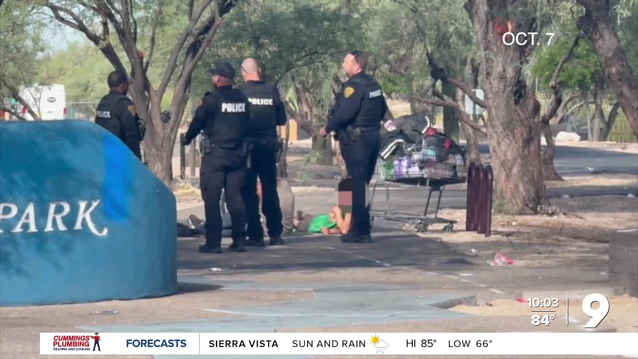 On Tuesday he said TPD arrested over fifty homeless people in a bigger deployment between Oracle and First. He said they were arrested for littering, possession of narcotics, possession of paraphernalia, criminal trespass, and prohibited possession. Some of them, he said, were booked and given resources through the jail’s transition center.