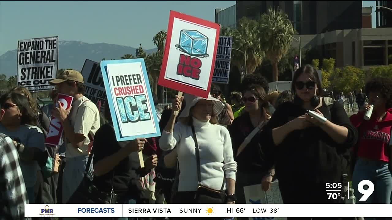 The rally began on the university mall, where participants listened to speeches before marching toward downtown Tucson to join other planned protests. The demonstration reflected growing opposition to federal immigration enforcement tactics during the Trump administration, particularly the use of federal agents in U.S. cities.