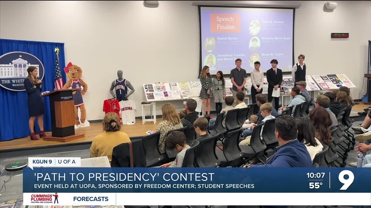TUCSON, Ariz. (KGUN) — Five Tucson-area high school students stepped up to a podium designed to evoke the White House press briefing room Friday, delivering speeches on leadership, civic engagement and the nation’s future as part of the second annual “Path to the Presidency” competition at the University of Arizona.