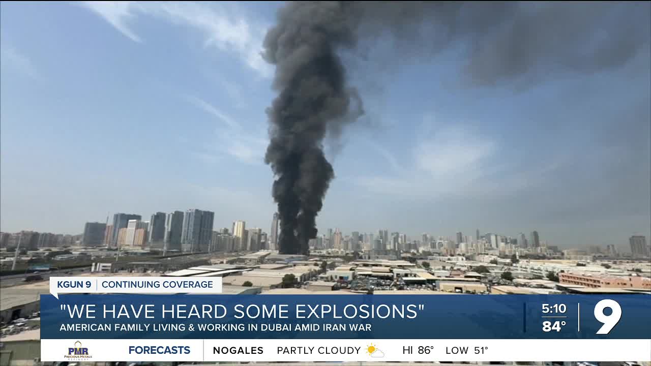 Recent images have shown the U.S. Consulate in Dubai hit by a strike and the Fairmont Hotel in a popular shopping district catching fire from debris that fell from the sky. Patterson lives only 20 minutes from that hotel.