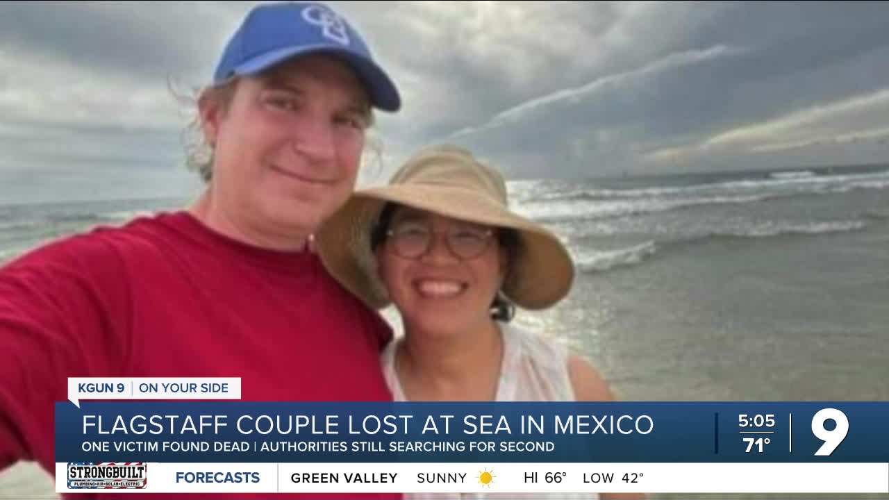 FLAGSTAFF, AZ — Authorities are searching for a Flagstaff couple reportedly lost at sea in Mexico, with authorities and family identifying a body found as one of those lost.