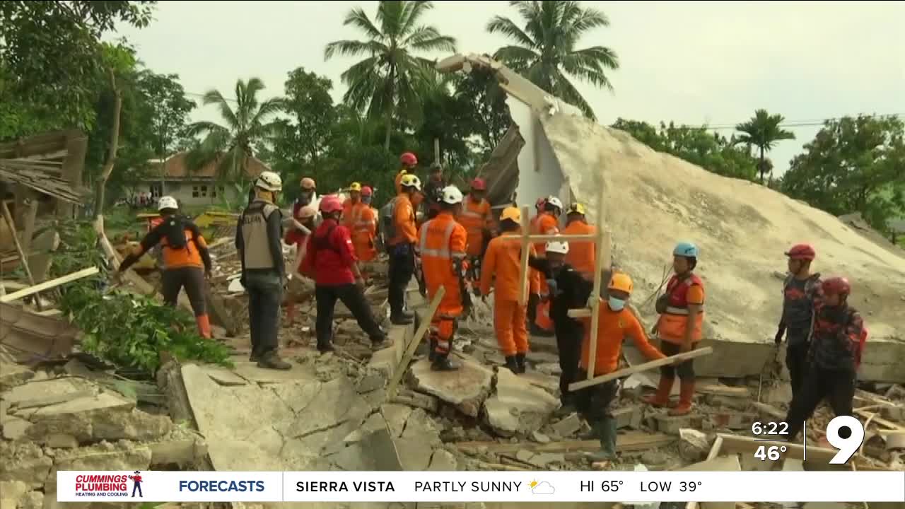 Several landslides closed roads around the Cianjur district. Among the dozens of buildings that were damaged was an Islamic boarding school, a hospital and other public facilities, the agency said. Power outages were reported.