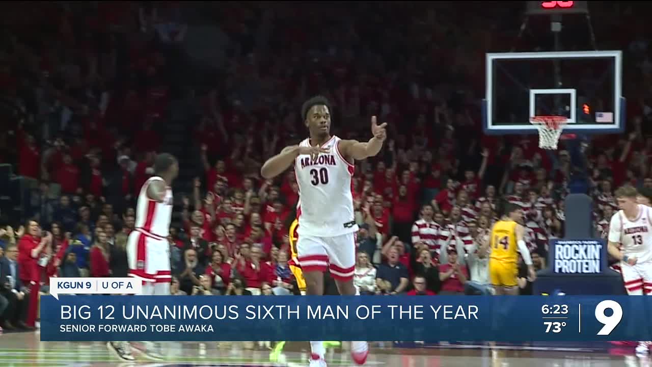 Awaka was a unanimous choice for the Big 12 Sixth Man of the Year award, becoming just the third player in Arizona basketball program history to earn the honor. He joins Jordan Brown, who won the award in 2020-21, and Pelle Larsson, who won it in 2021-22.
