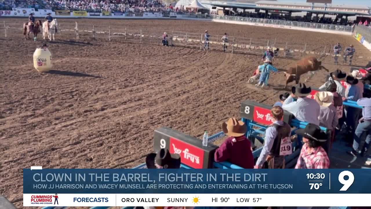 At the Tucson Rodeo, the laughs, the hits and the heart all come together, thanks to a clown in a barrel and a fighter in the dirt.
