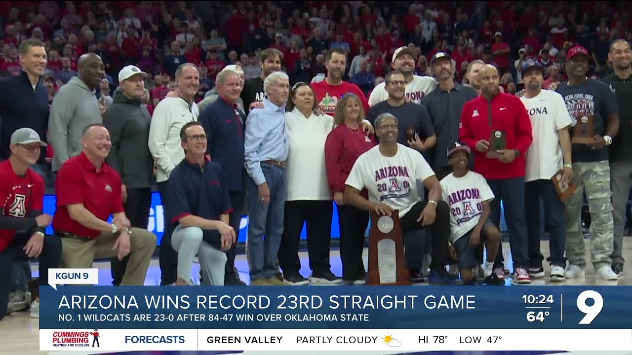 The Wildcats (23-0, 10-0) extended the best start in school history by holding the Cowboys to 24.6% shooting. Arizona’s start also is the best in Big 12 history, passing Kansas’ 22-0 opening run in 1996-97.
