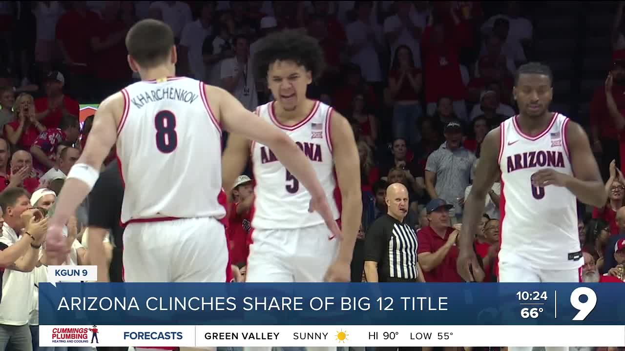 TUCSON, Ariz. (AP) — Brayden Burries had 20 points and 12 rebounds, Motiejus Krivas added 13 points and No. 2 Arizona clinched a share of the Big 12 regular-season title with an 84-61 win over No. 14 Kansas on Saturday.