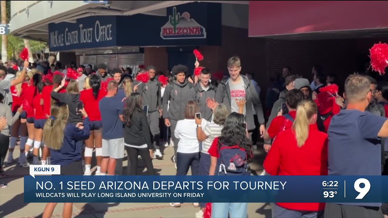 TUCSON, Arizona — With fans cheering them on, the Arizona Wildcats men's basketball team left McKale Center at Alkeme Arena for San Diego, officially embarking on their quest for a second NCAA national championship as the No. 1 seed in the West Region.