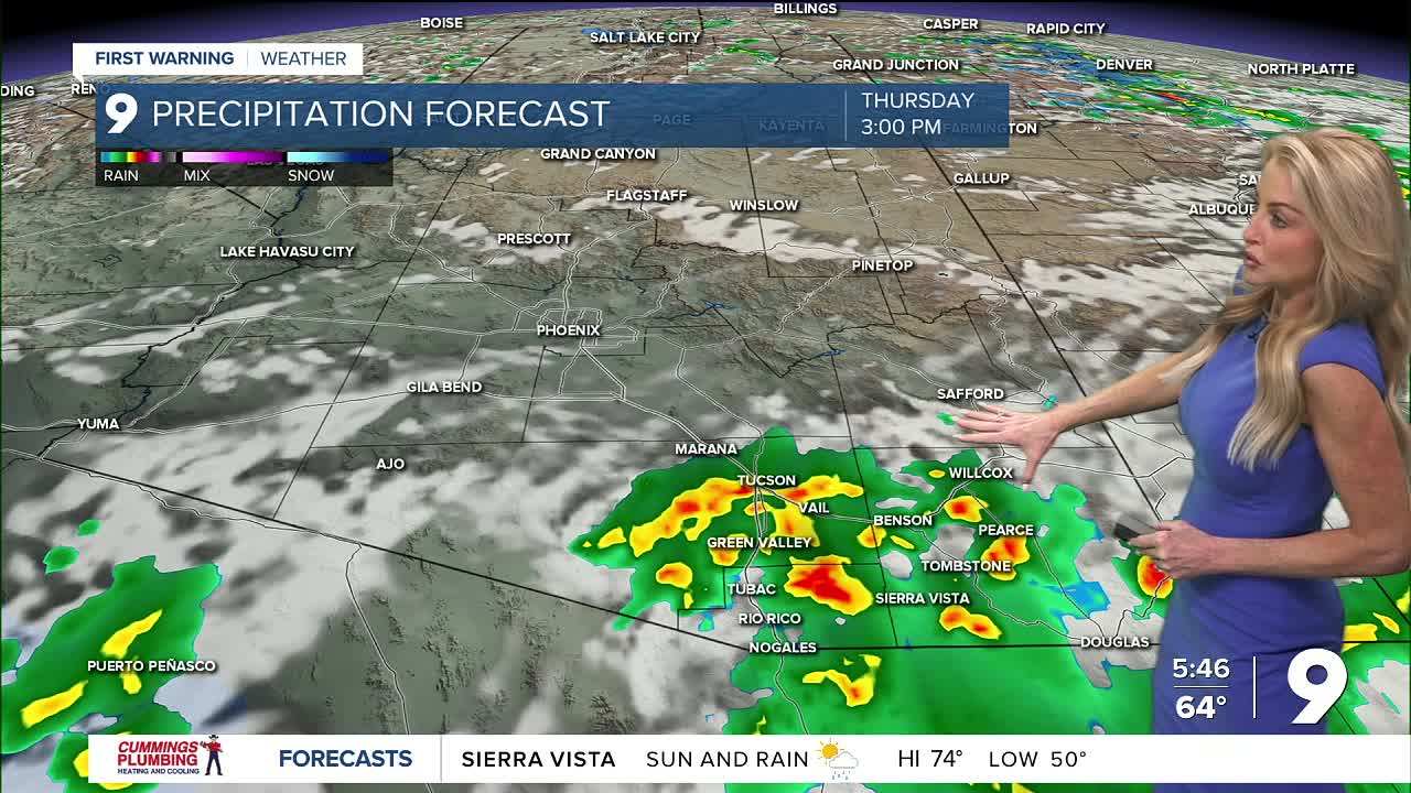 TUCSON, Ariz. (KGUN) — There will be two periods of possible showers today, with the first being light in nature, moving in after sunrise, and staying mostly to our south and east.