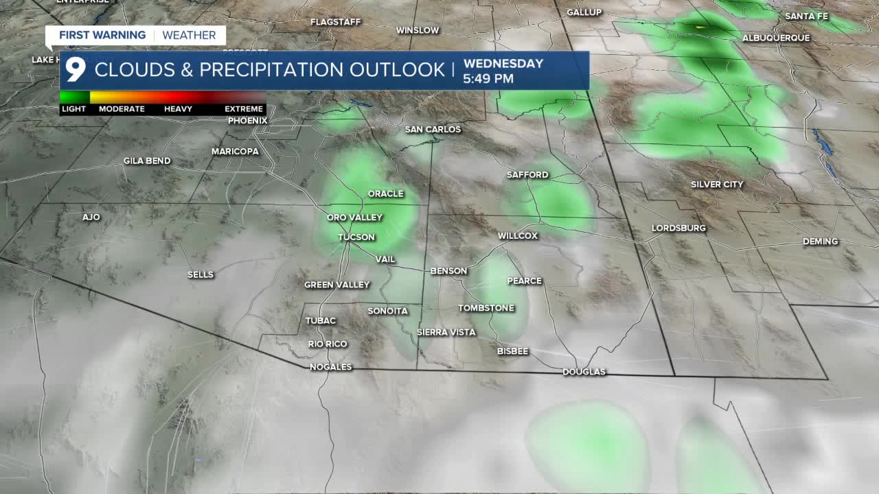 TUCSON, Ariz. (KGUN) — Warm, dry weather will soon be replaced with some tropical moisture and a good chance of showers to finish the week.