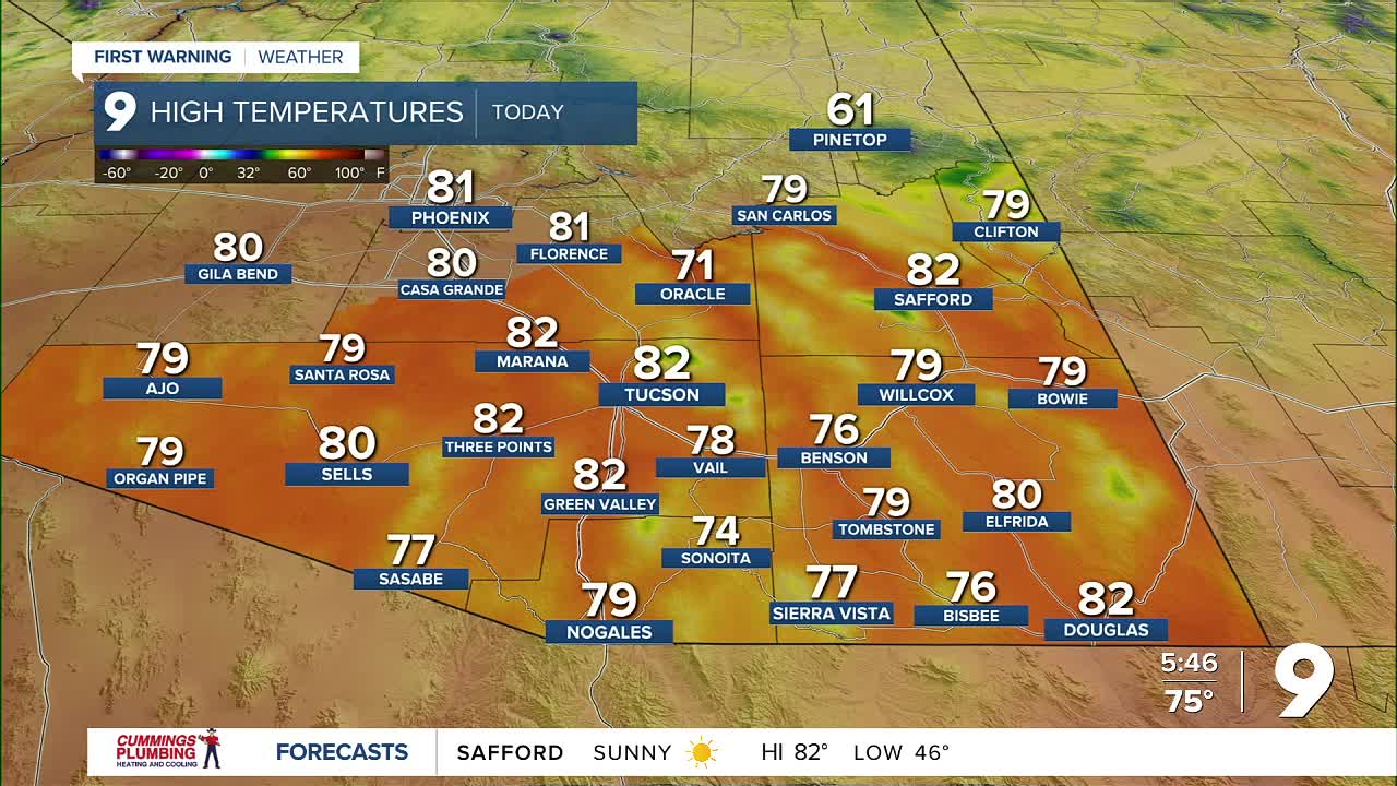 TUCSON, Ariz. (KGUN) — Sunny and slightly warmer than Sunday, although still below normal.