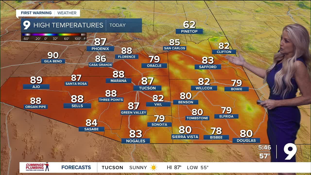 Daily highs will continue to climb into the mid to upper 80s across Tucson, with upper 70s to lower 80s further south and east.