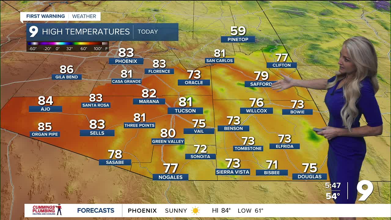 Highs will hover in the lower 80s across Tucson today, then warm closer to normal for the weekend.