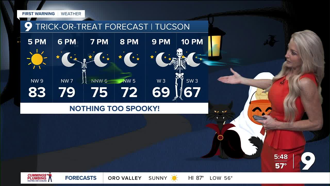 The Tucson TRICK-OR-TREAT forecast... 6PM - 79°, 7PM - 75°, 8PM - 72°, 9PM - 69°, 10PM - 67°.