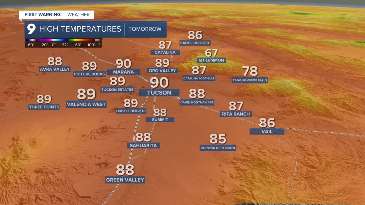 TUCSON, Ariz. (KGUN) — Dry and warm conditions continue into the new week, as high temperatures will be 4° to 9° above average.