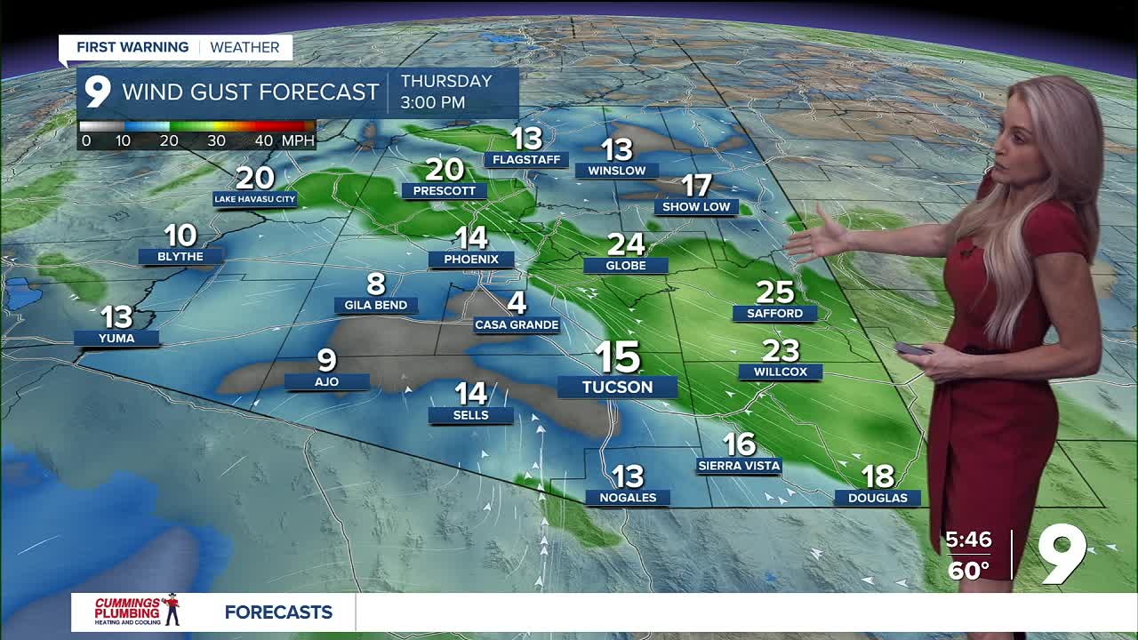 TUCSON, Ariz. (KGUN) — Strong easterly winds will continue through mid to late afternoon, with increasing clouds and possible virga or light sprinkles.