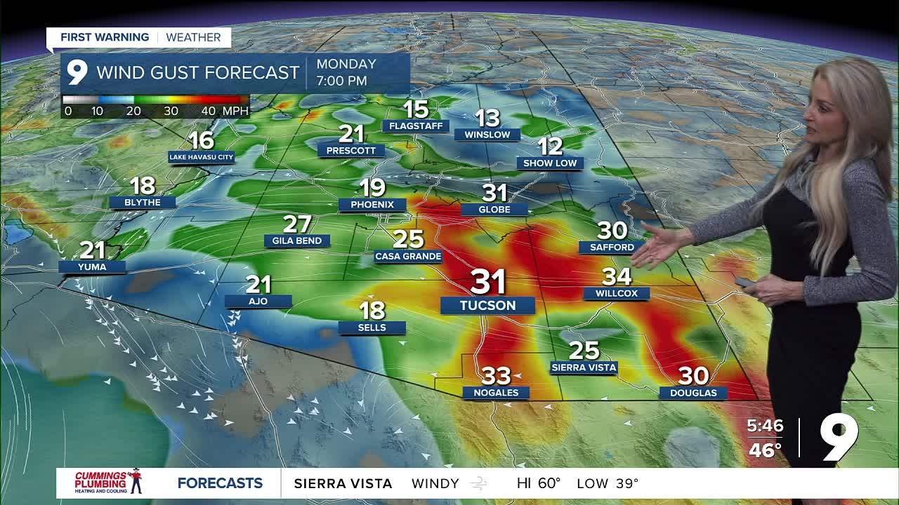 TUCSON, Ariz. (KGUN) — A system to our east will bring breezy conditions today through early Tuesday, with mostly cloudy skies.
