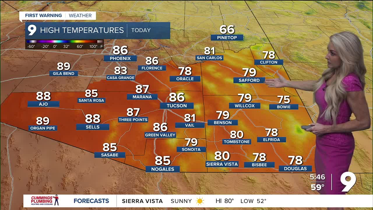 TUCSON, Ariz. (KGUN) — Mostly sunny and warming up after a cold start across eastern valleys.