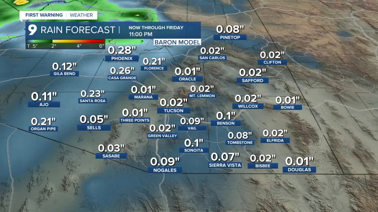 The best chance of showers will occur Christmas Eve morning and Christmas Day morning with a few showers lingering east of Tucson Christmas Day.