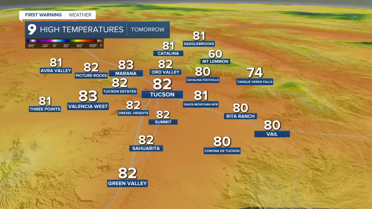 High temperatures will drop a few degrees with highs in the mid-70s for Christmas and dropping into the mid-60s this weekend as another system moves across southern Arizona.