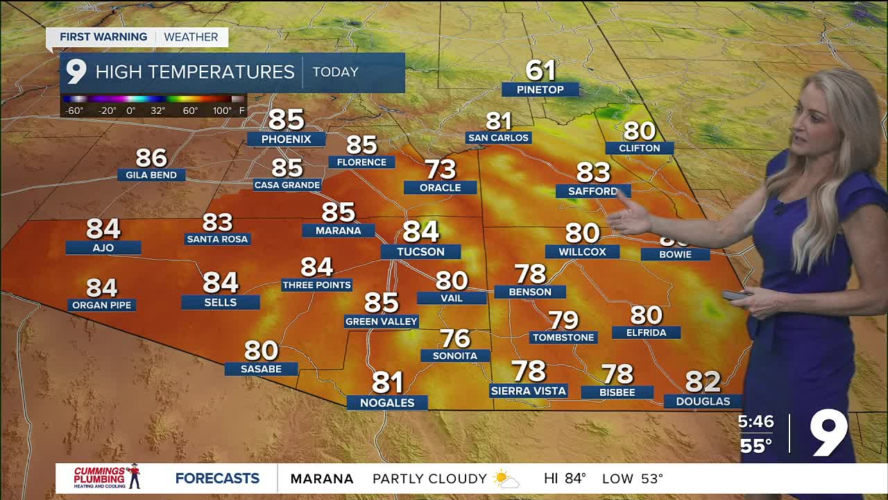 High temperatures will continue to warm up into this weekend, nearing 90° in Tucson by Easter Sunday.