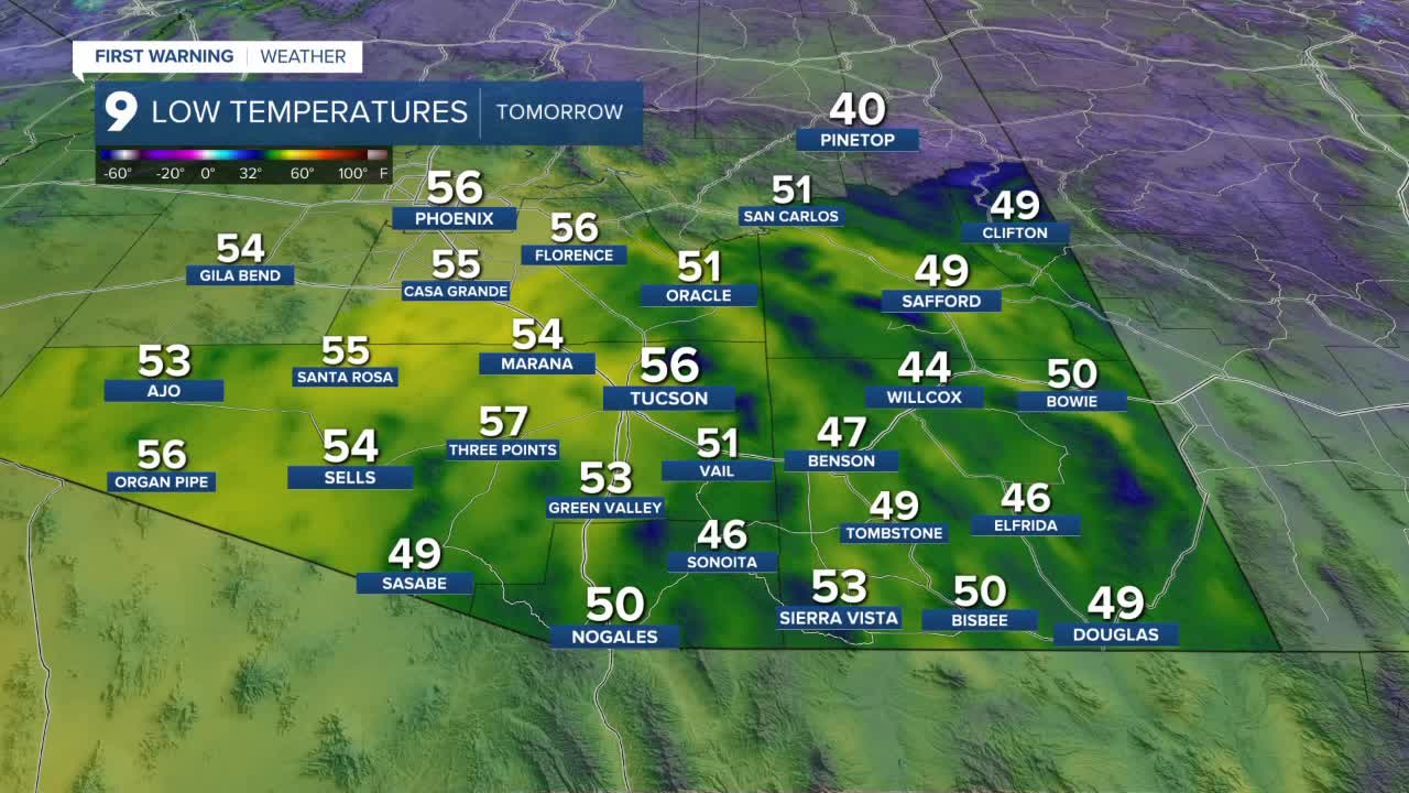 The weekend's outlook reflects typical winter patterns for the region, with daytime temperatures above freezing and limited wet weather. December in Tucson generally sees mild days and cool nights, with occasional cloud cover and sparse rainfall.
