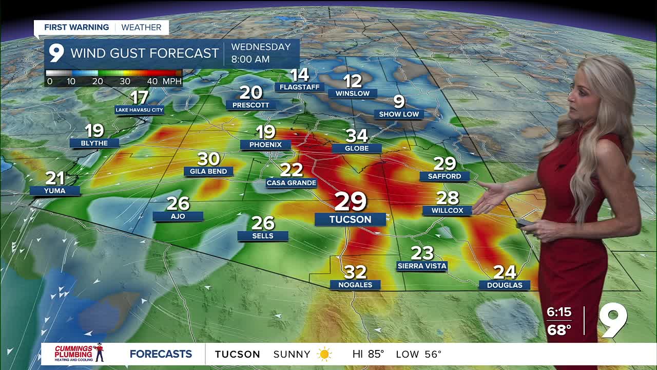 TUCSON, Ariz. (KGUN) — A weak cold front will bring gusty east to southeast winds through the early part of the day, with slightly cooler afternoon highs.