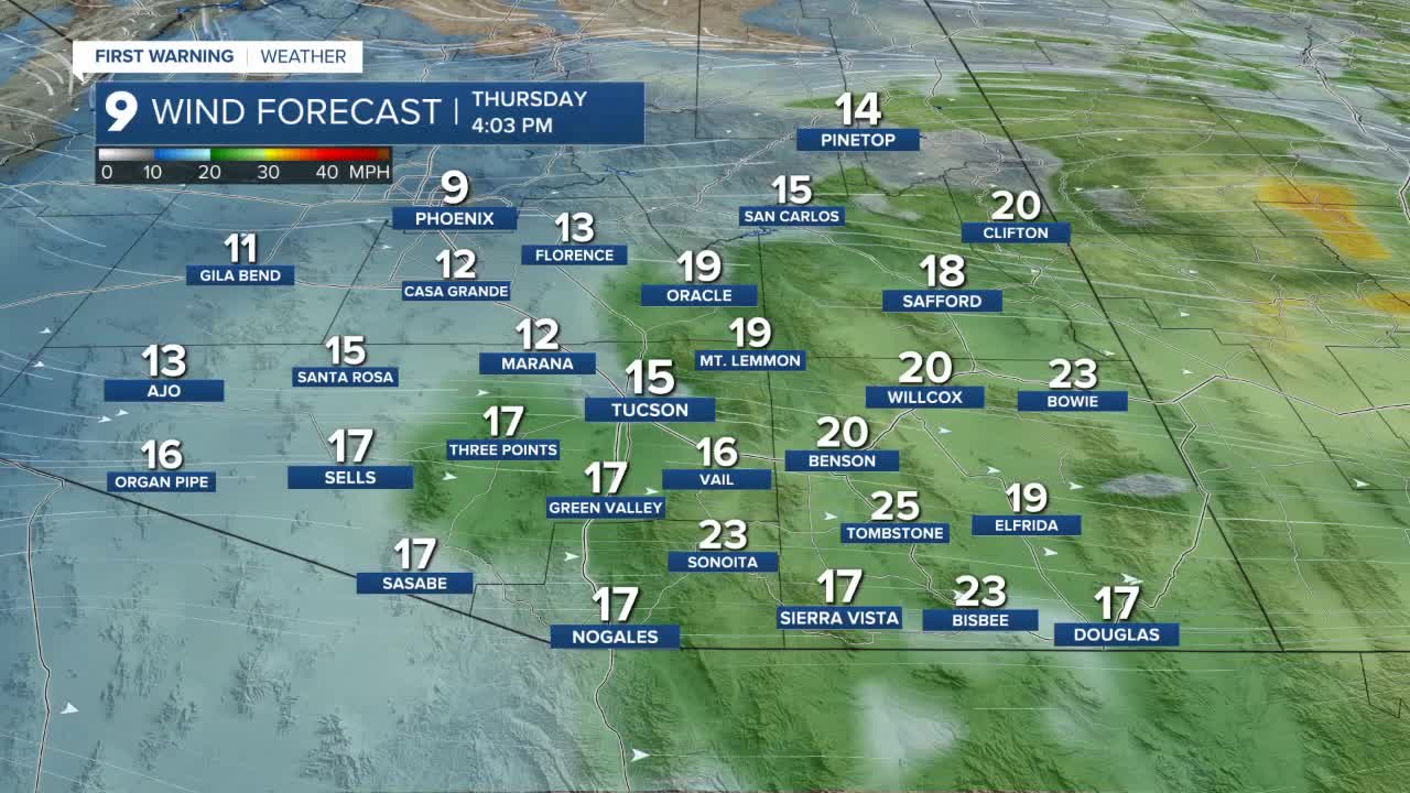TUCSON, Ariz. (KGUN) — Occasional gusty wind and low humidity will combine to keep wildfire risk elevated through the remainder of the week.
