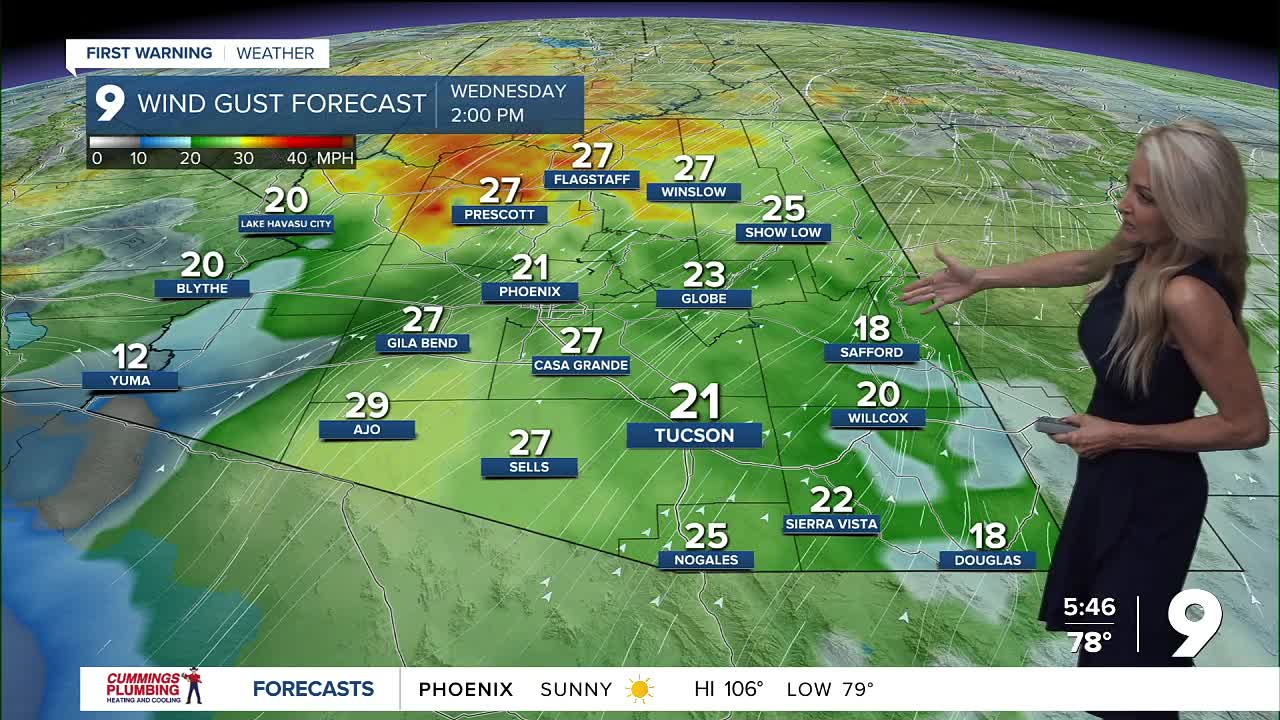 Tucson will see a 15-20% chance for a few storms later this afternoon, along with 15-20 mph winds.