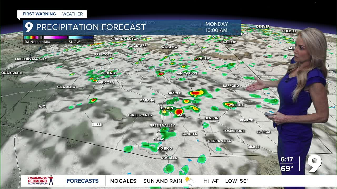 TUCSON, Ariz. (KGUN) — Abundant lingering tropical moisture will lead to widely scattered storms today.