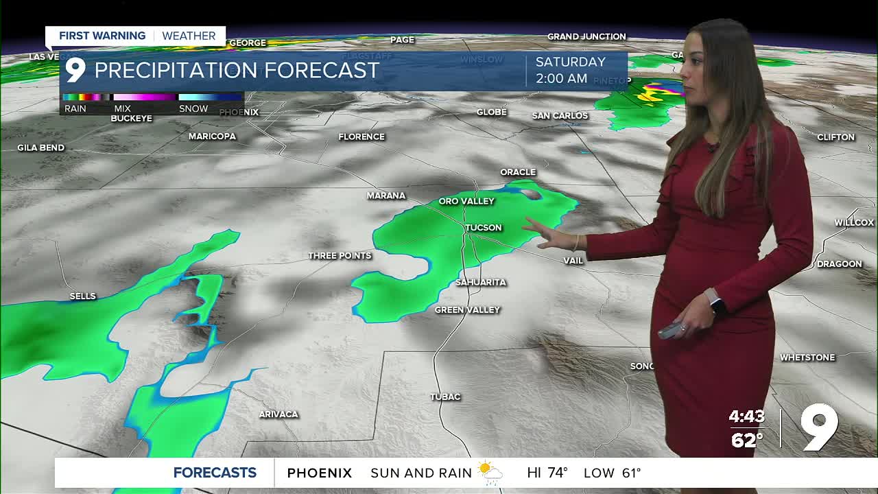TUCSON, Ariz. (KGUN) — Expect a few isolated to scattered showers this Christmas morning, then mostly dry weather with some sunshine returning this afternoon.